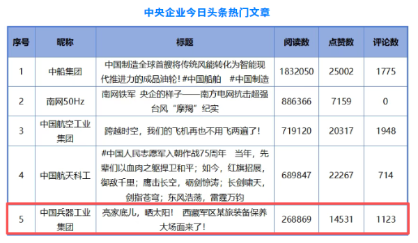 兵器工業集團2篇文章入選中央企業新媒體“熱門文章”